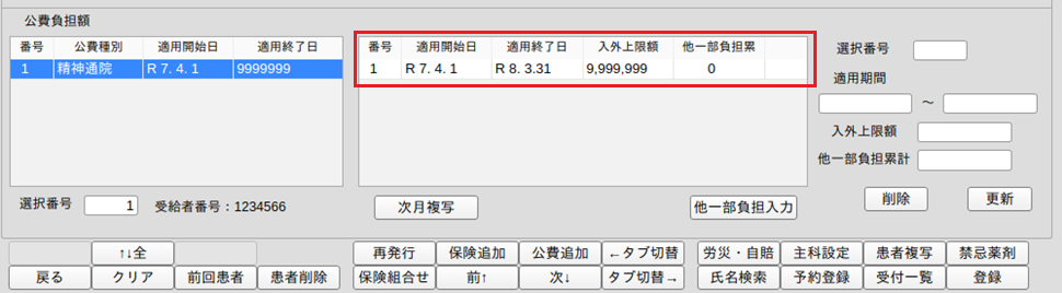(3)患者登録-所得者情報-公費負担額(受給者証単位で入力)