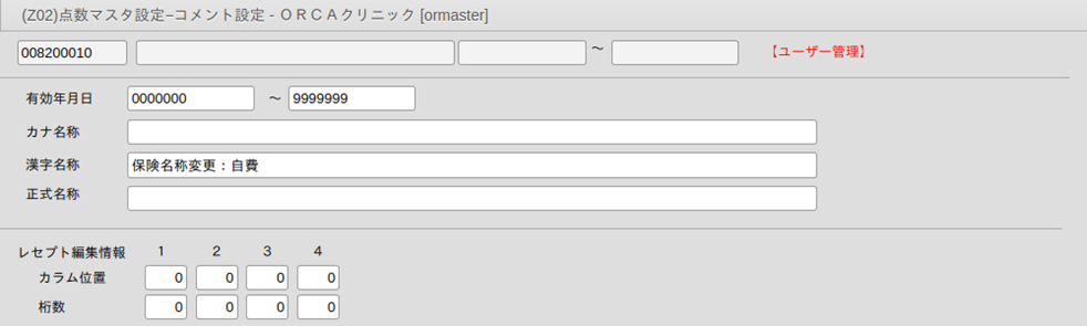 0082XXXXXのコメントコードを「保険名称変更:○○○」の内容であらかじめ作成しておきます。