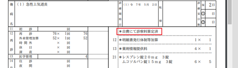 <「他保険で診察料算定済み」のコメントを変更する>