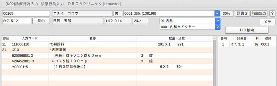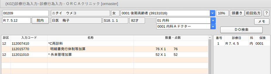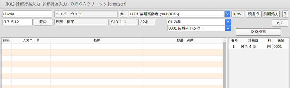 - 診療日がシステム日付と同日である,または環境設定で日付を変更した場合