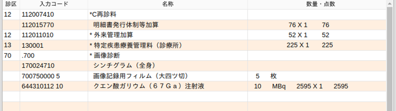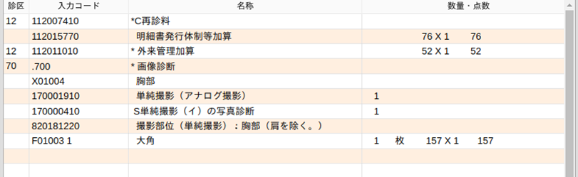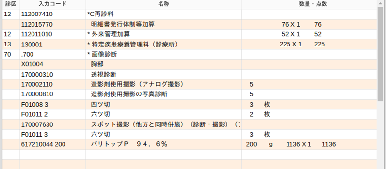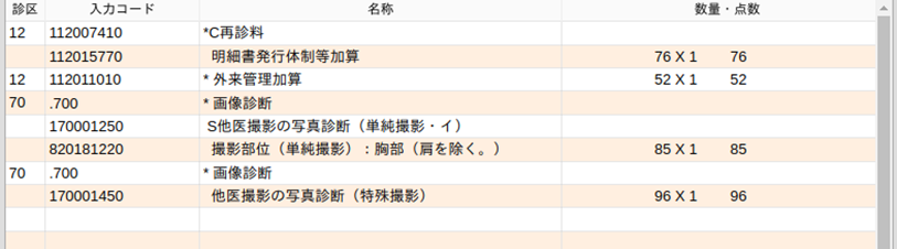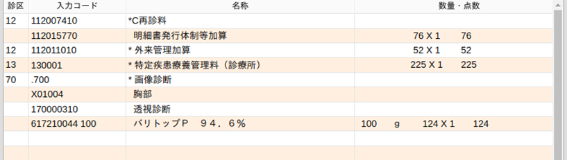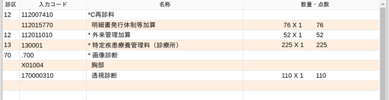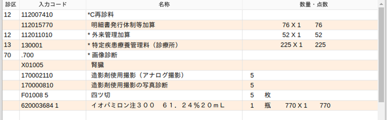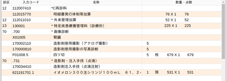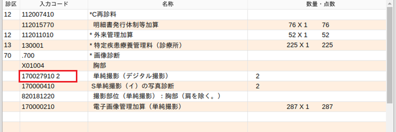 造影剤を入力すると造影剤使用加算コードが自動発生します。