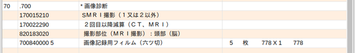 | 画像診断料 | .700 |