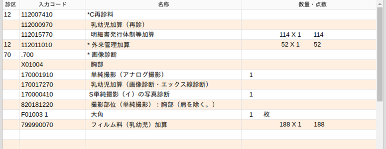 <例2>胸部単純撮影および写真診断を乳幼児に行った場合(胸部に選択式コメントを登録済み)