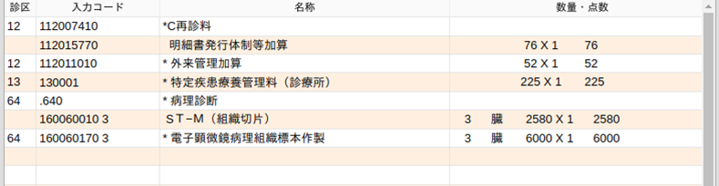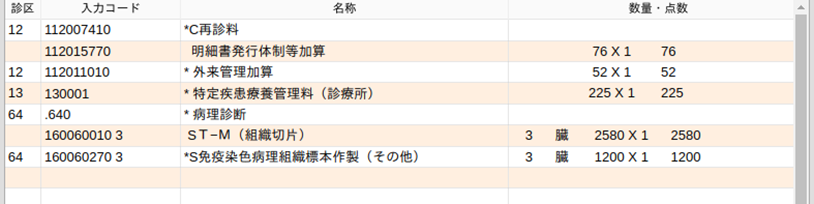 病理組織顕微鏡検査を行った場合は次のような入力になります。