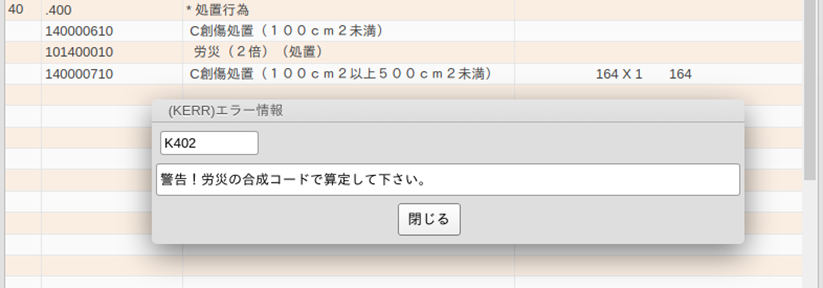 同じ種類の処置を複数算定する場合は合成コードがある可能性があるため警告メッセージを表示します。