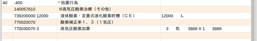 高気圧酸素加算の加算コードと気圧数を数量として「3」を入力します。
