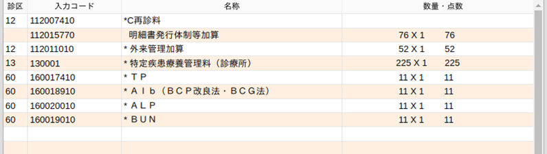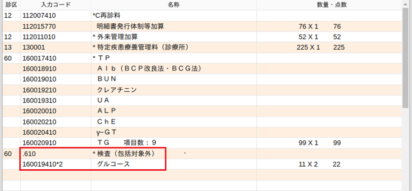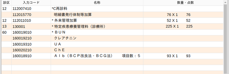 *1または*1を省略している検査は包括グループごとにまとめます。