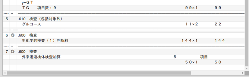 これは,包括(まるめ)検査の項目を表しますが記号ごとに包括のグループを分けています。
