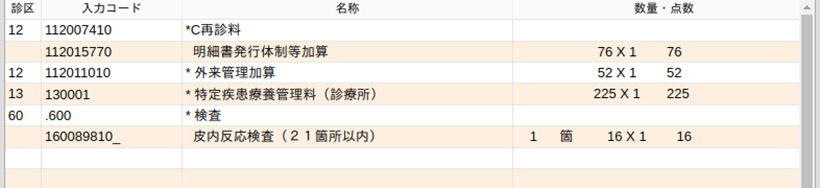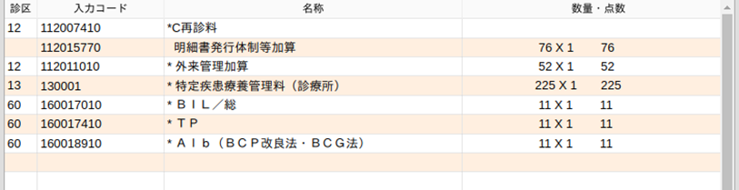 診療種別区分を入力すると,包括検査と,2回以上の同じ包括検査の入力は正しく行われます。