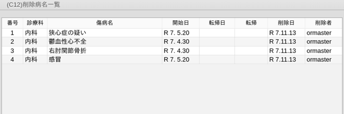 削除した病名は「削除一覧」(Shift+F8)で内容を確認できます。