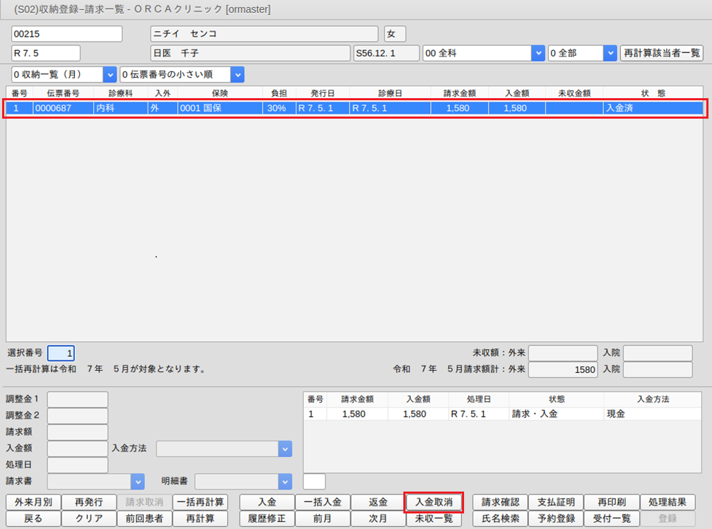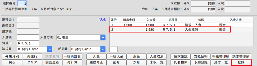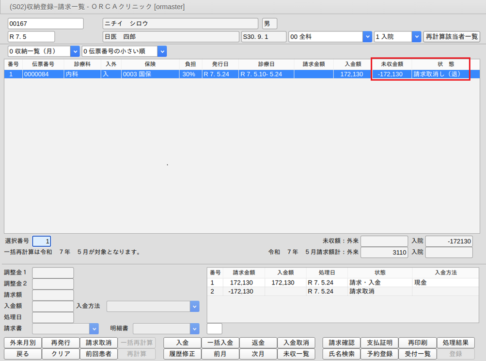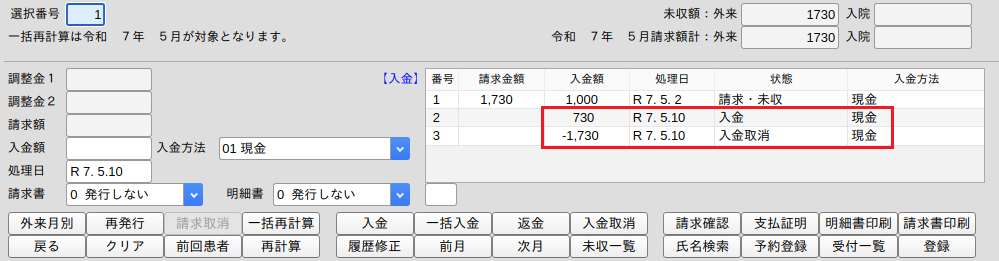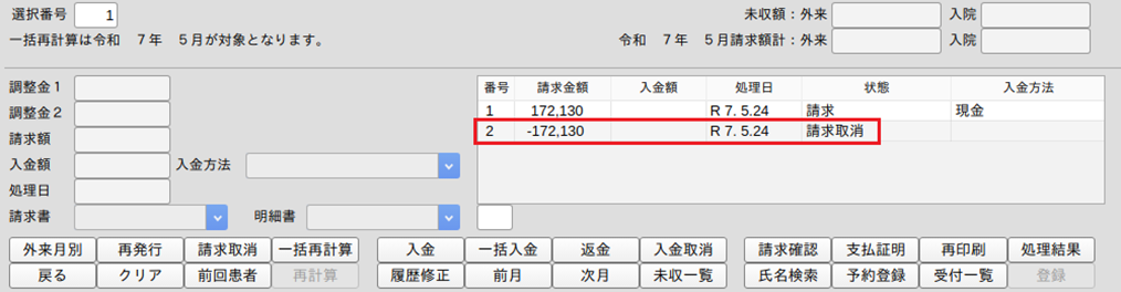 3.請求取消の収納履歴を作成します。
