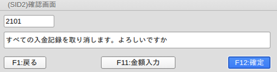 「F12:確定」:全額をシステム日付で入金を取り消します。