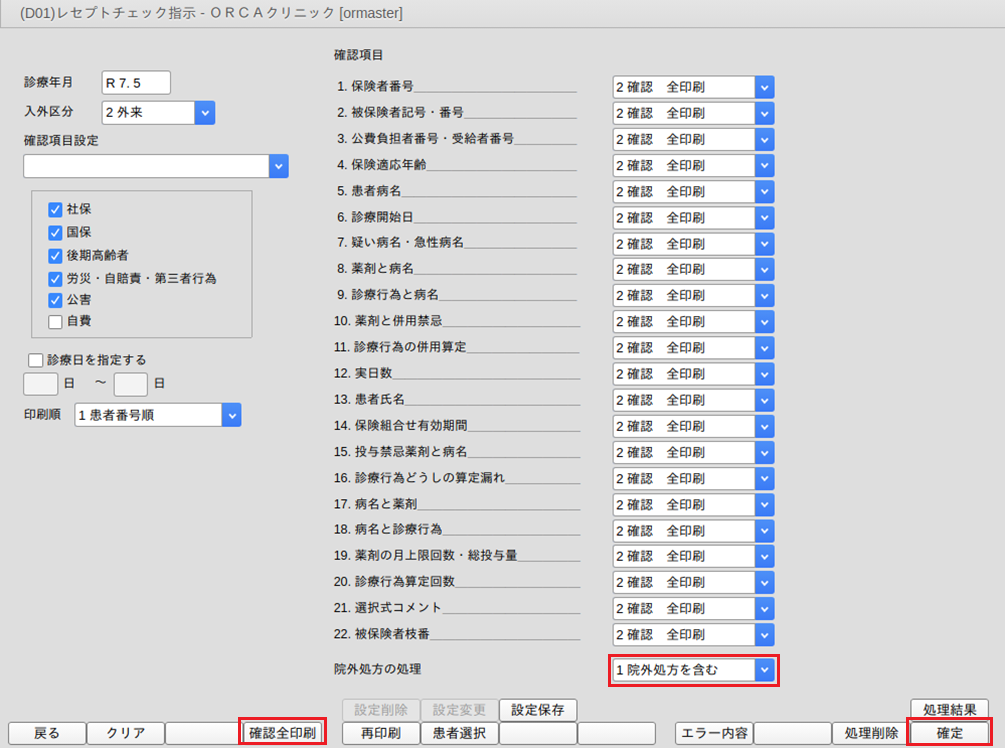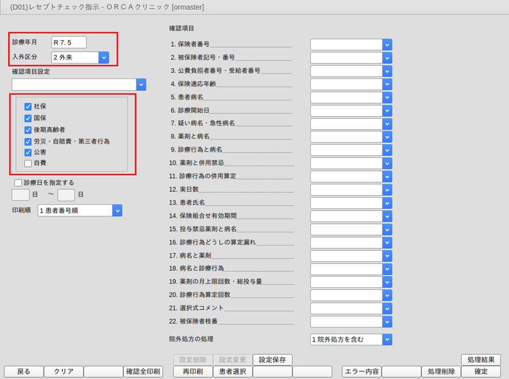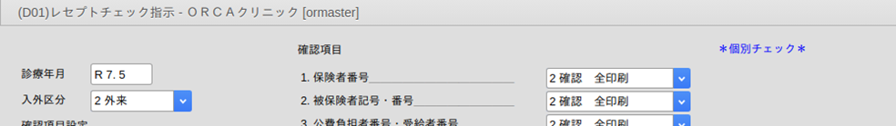 指定した診療日に受診した患者の一月分をチェックします(指定日のみのチェックではありません)