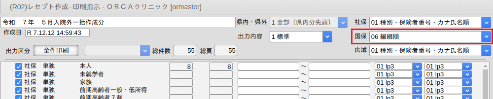 | 保険者印刷順 | 3:国保組合・市町村国保・県内扱いの県外国保組合 |