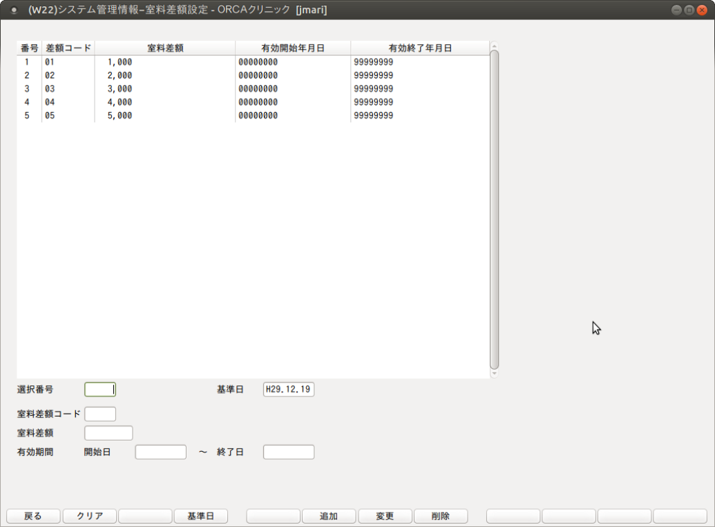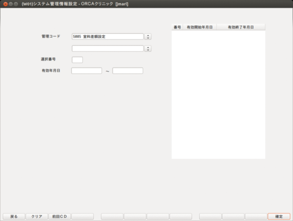 | 有効期間 | 通常はゼロから”99999999”を設定しますが,同一区分コードで室料差額が変更になった場合は,該当年月日を設定してください。 |